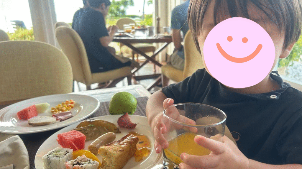 ビュッフェは、ご飯・パン・麺・シリアル・果物など一通りのものが全て揃っており、長男(8歳)も次男(2歳)も食べるものに困ることはありませんでした。