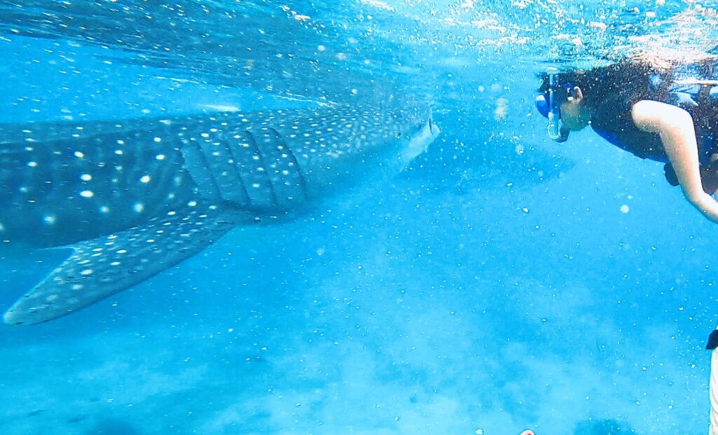 大きなジンベエザメに大興奮。海の中を一緒に泳ぐ特別感は格別。