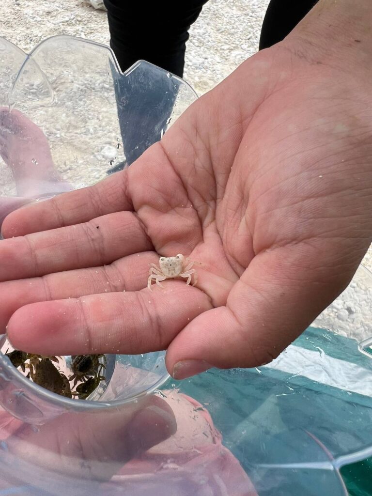 4.白い砂に白い蟹。初めて見る蟹に次男も不思議そうでした
