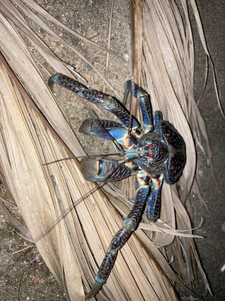 特に印象的だったのは、帰り道の道路でまさかのヤシガニに出会えたこと。